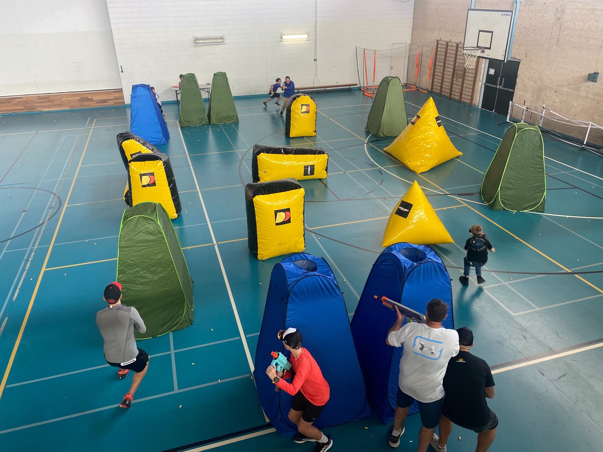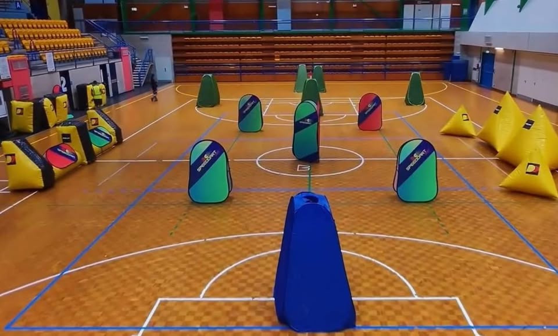 SpeedDart is an exciting international sport designed for players of all skill levels. Featuring a fast-paced 5v5 competitive format, each match is a single-life elimination game that keeps the action intense and engaging. The game is played on a field roughly the size of a basketball court, with up to 25 strategically placed obstacles to enhance strategy and movement.