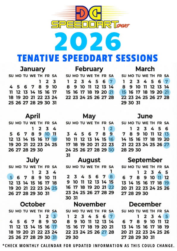 SpeedDart Sport offers an annual guide to allow you to plan for your next session! Confirmation of Timings and Dates will come with the monthly calendar above!
